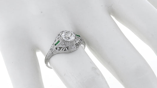 Antique 0.95ct Diamond Emerald Engagement Ring