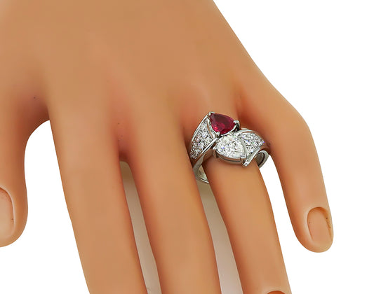 Estate 1.16ct Burma Ruby 1.00ct Diamond Heart Ring