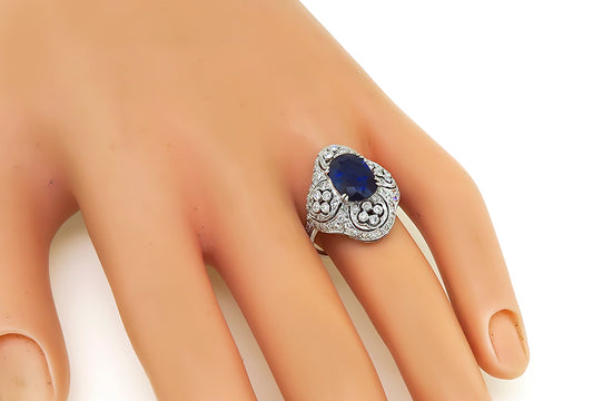 Estate GIA Certified 5.17ct Ceylon Sapphire 2.53ct Diamond Ring