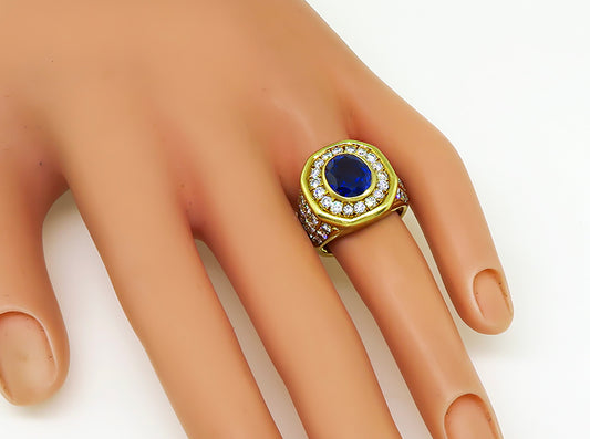 Estate 3.50ct Sapphire 3.00ct Diamond Gold Ring
