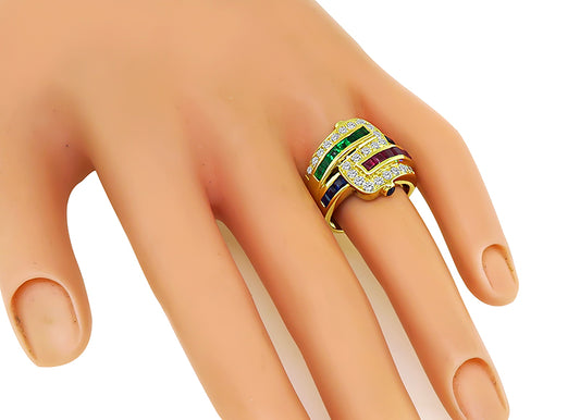 Estate 0.82ct Diamond 1.91ct Emerald Sapphire and Ruby Gold Ring