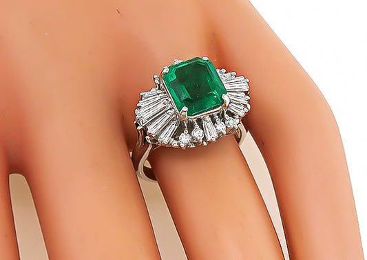 Estate 1.65ct Emerald 1.45ct Diamond Ballerina Ring