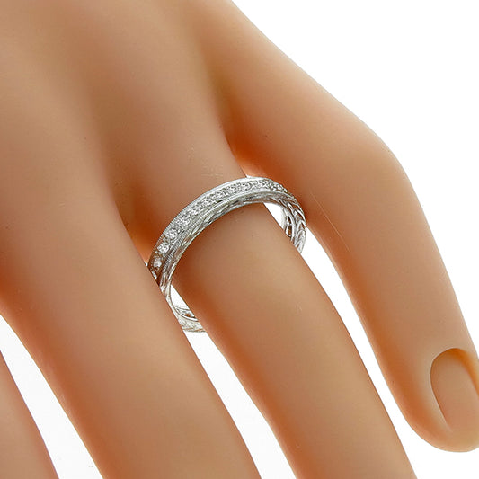 Art Deco Style 0.55ct Round Diamond Eternity 18k White Gold Wedding Band