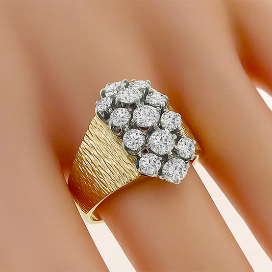 1960s 2.00ct Round Cut Diamond Cluster 14k Yellow Gold Ring
