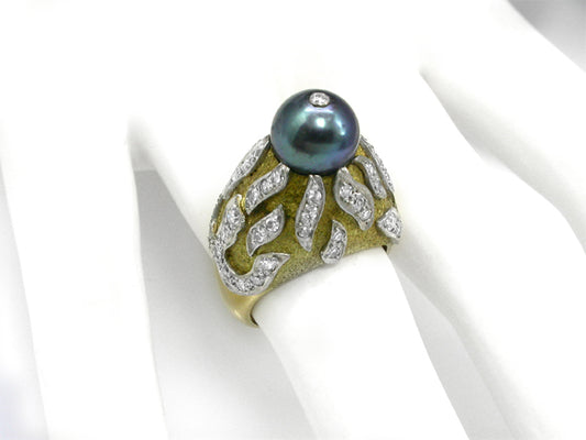 1960s Diamond Blue and Green Enamel 18k Yellow Gold Flower Ring