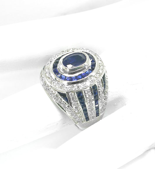Art Deco Style 5ct Sapphire Diamond 18k Gold Ring