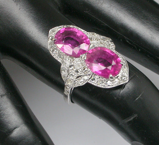 Art Deco Style 2.52ct OLd Mine Diamond Ruby Platinum Ring