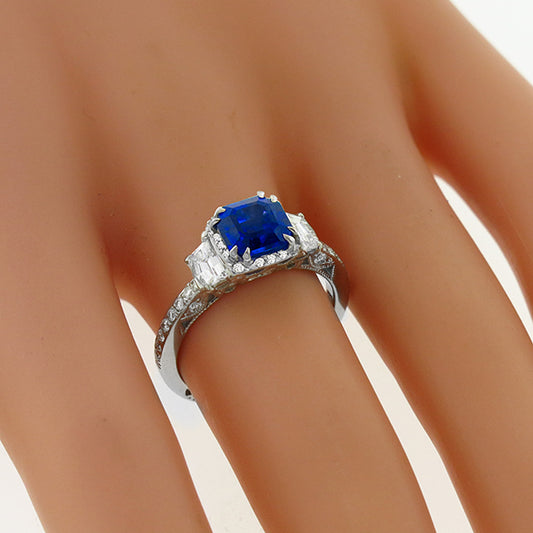 Tacori 1.83ct Asscher Cut Sapphire Trapezoid Cut Diamond Engagement Ring