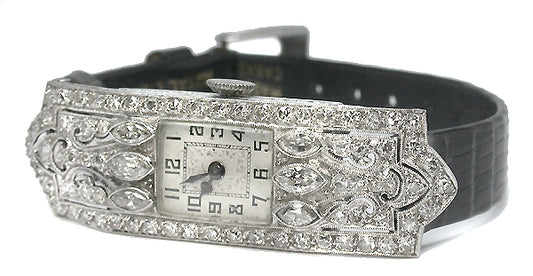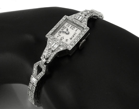 Art Deco 2.50ct Diamond Platinum Gold Watch by Girard Perregaux